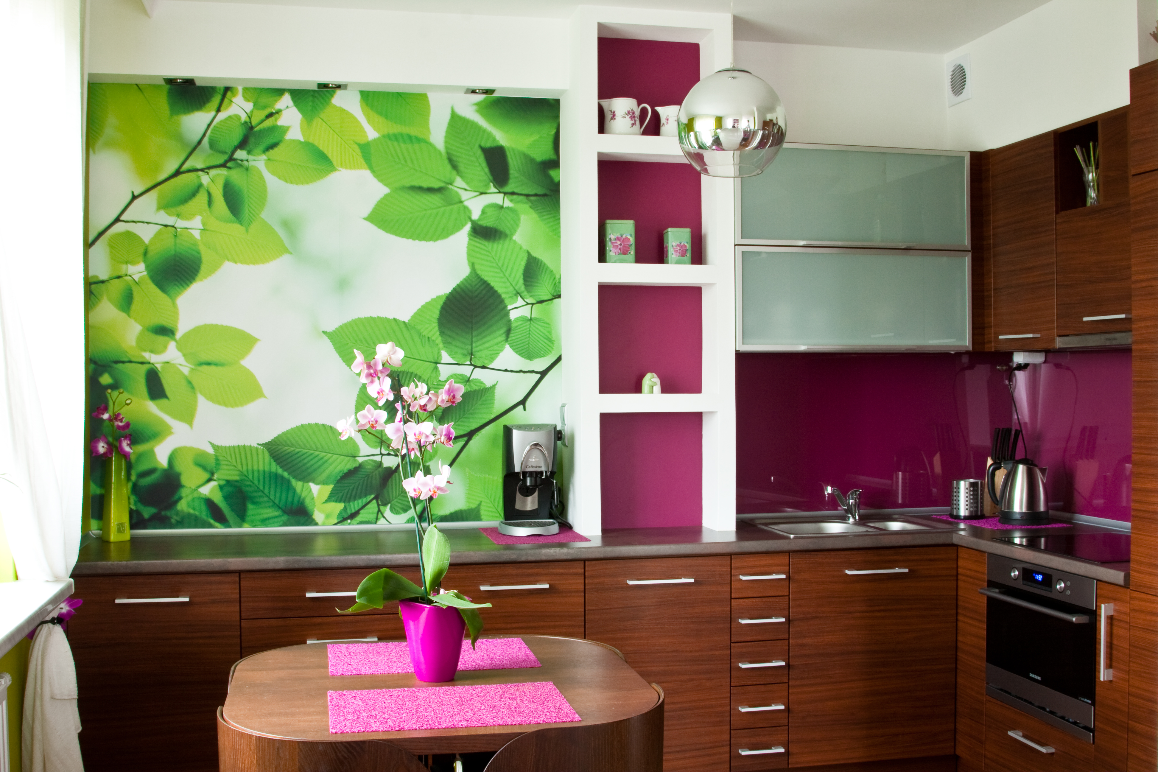 Przedpokój jest nietypowy, ponieważ jest jednocześnie kuchnią. Po lewej stronie drzwi umieszczona jest pakowna szafa, po prawej – zabudowana lodówka oraz piekarnik. Naprzeciw drzwi umieściłam niskie kuchenne szafki (trzeba wyciąć otwór na zlew i poświęcić jedną z szafek na ukrycie zmywarki). Kolor szafy nawiązuje do jasnego panelu dekoracyjnego w kuchni. Naprzeciw drzwi znajduje się lustro, ściana za nim może być w mocniejszym, czekoladowym lub bordowym kolorze (farba lub tapeta o strukturze płótna).