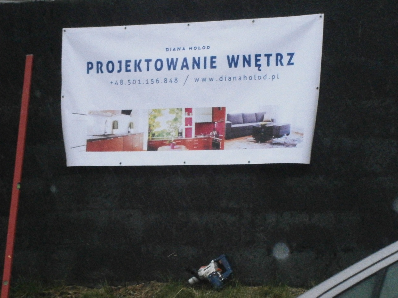 Wczoraj, w strugach deszczu, powiesiliśmy w końcu mój banner.