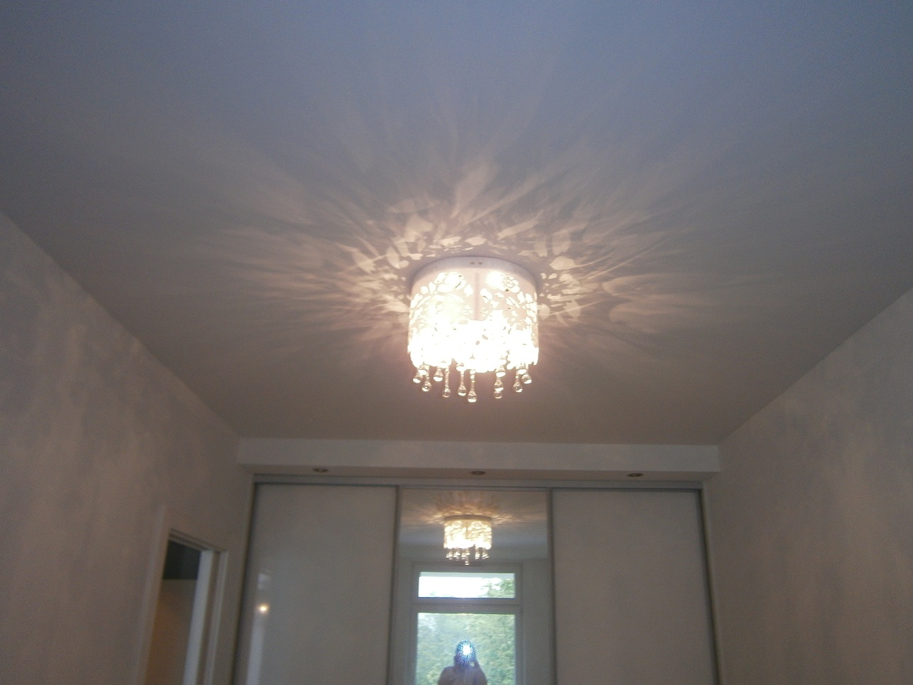 Lampa Wiktoria w sypialni. W nocy cały sufit zamienia w obraz. Dodatkowo ma lustrzane „dno”, więc leżąc w łóżku można się przeglądać…