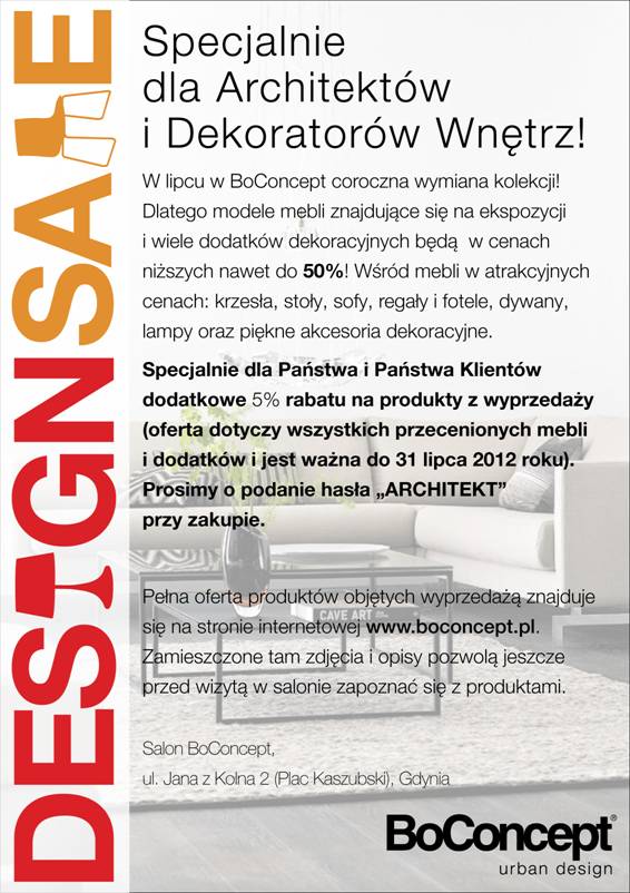 Prawdą jest, że BoConcept jest raczej drogim sklepem. Często szukam tam inspiracji, oglądam ich katalogi, miałam okazję bywać na organizowanych przez trójmiejski sklep spotkaniahc. Przy okzaji – jeśli tylko macie okazję wybrać się do ich sklepu przy Placu Kaszubskim w Gdyni, to bardzo polecam. Mieści się w pięknej kamienicy, z widokiem na ładny plac, w codziennym pędzie można tam na chwilę zatrzymać się i z przyjemnością pooglądać naprawdę dobry design. może coś wpadnie w oko, a przy okazji wyprzedaży okaże się w zasięgu portfela. myślę sobie, że przy neutralnie i niedrogo urządzonym wnętrzu dodanie smaczku kilkoma naprawdę świetnymi elementami ma duży sens. Zobaczcie sami co jest w ofercie, a ja zamieszczam informację o możliwości uzyskania dodatkowych 5% zniżki od już obniżonych cen po podaniu pewnego hasła…