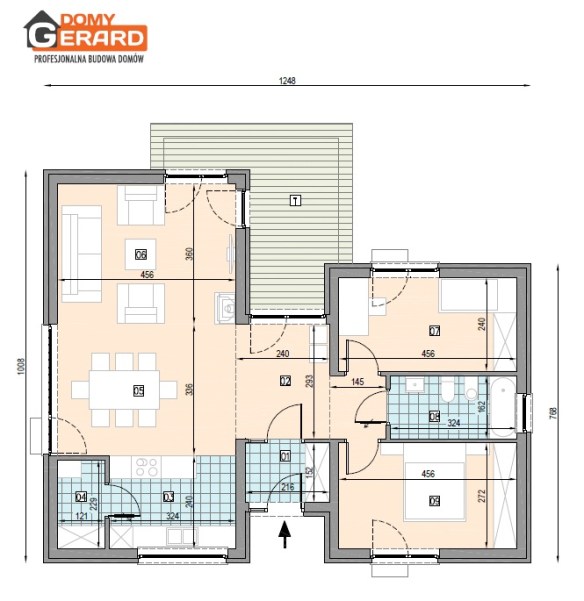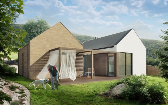 Teraz kwestia domu. Państwo X ciężko pracują i nie mają czasu doglądać majstra i pomocników ani też dowozić i organizować cement, pustaki, deski, koparki oraz inne bardzo potrzebne rzeczy. Postanawiają zdać się na firmę, która zrobi to od początku do końca. Znajdują firmę Gerard, która odpowiada im z trzech powodów. Po pierwsze, czytali Sapkowskiego i dobrze im się kojarzy nazwa. Po drugie, szukają ciekawej, nowoczesnej architektury i odstraszają ich pseudodworkowe gargamelki. Po trzecie w końcu – naprawdę nie chcą wydać zbyt dużo pieniędzy. Wybierają drugi najtańszy dom z oferty tej firmy, a mianowicie DOM80SA. Decydują się budować bez garażu, z zamiarem ewentualnego dobudowania go za jakiś czas. Ich dom będzie wyglądał tak: