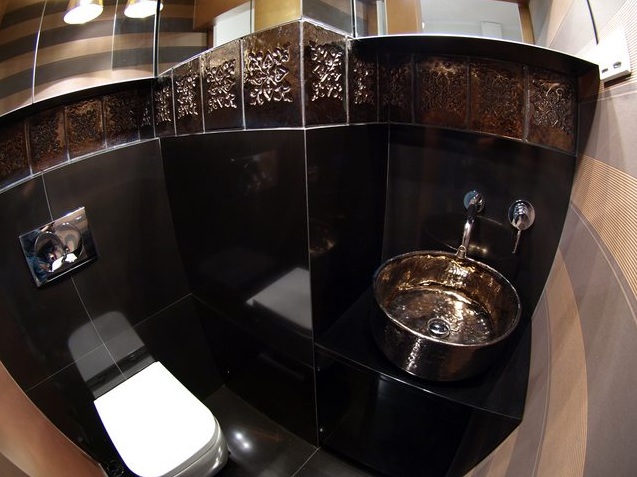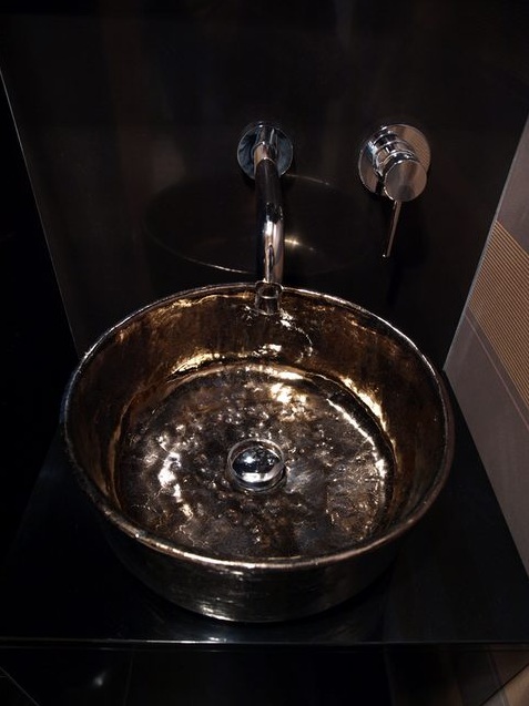 Tyle teorii, a poniżej kilka zdjęć. Pierwsze pochodzą z mieszkania, które projektowałam na warszawskiej Woli. W toalecie użyliśmy złotych dekorów i umywalki, a w kuchni srebrno-szaro-brązowych kafli nad płytą grzewczą. Ceramika pochodzi ze studia Dekornia z Warszawy, które bardzo polecam.