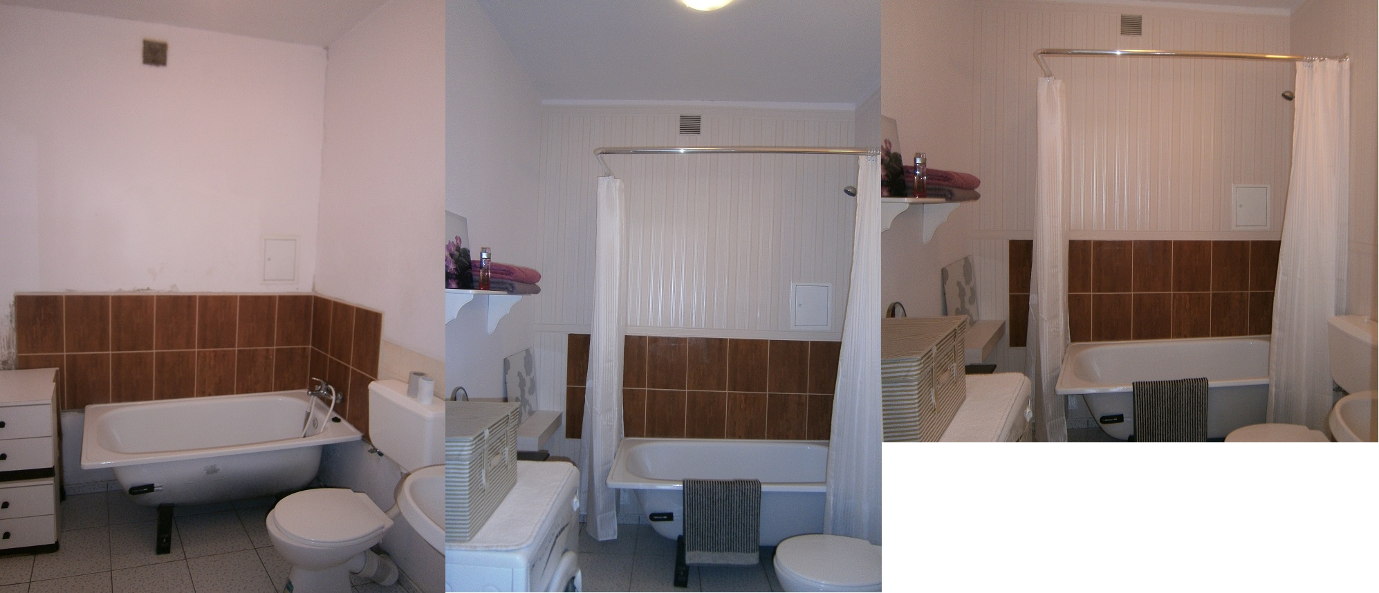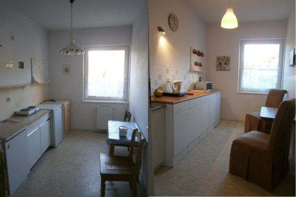 – malowanie, tapetowanie (kuchnia i łazienka), zerwanie przepaskudniej (i porwanej) wykładziny w przedpokoju