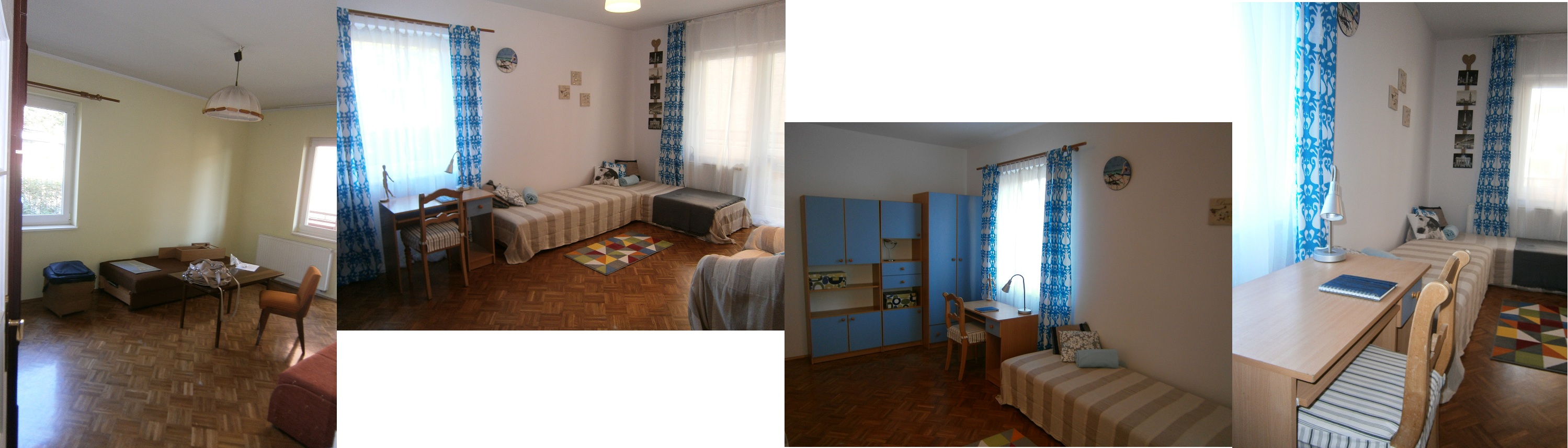 – ubranie całości dodatkami – większość zakupiona w Leroy Merlin (wpadli w szał przeceniania poduszek i zasłon, płaciłam po 5 zł za poduszki i po 19 zł za zasłony), Jysku, parę rzeczy z Ikea. Ściany zostały ubrane kanwami ze zdjęciami (koszt 4-9 zł za sztukę) oraz robionymi samodzielnie „obrazkami” z próbek tapet (to akurat kosztowało okrągłe zero zł).