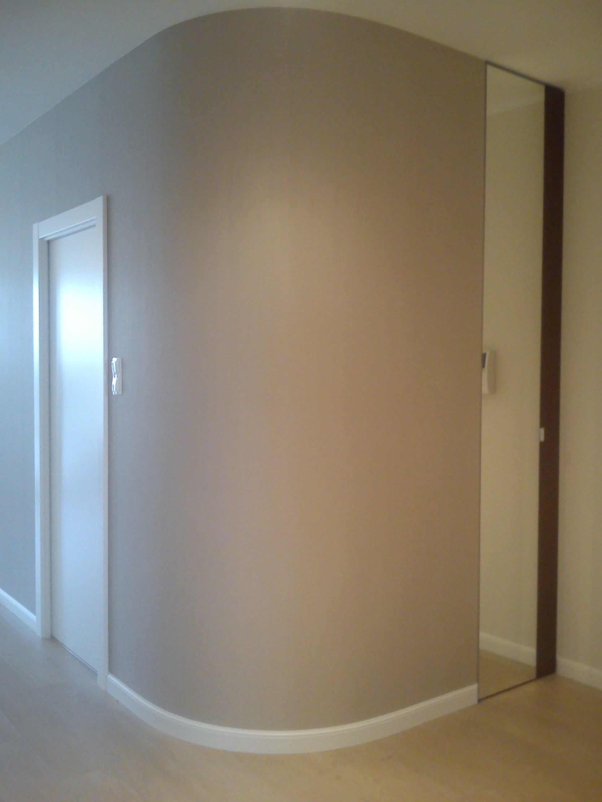-ściany działowe szerokości 10 cm z zabudowy k-g, drzwi do łazienki 80 cm, do pokoju dziecka brak drzwi – można wydzielić zasłoną lub zdecydować się na drzwi suwane.
