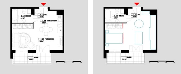 Pod spodem zamieszczam rozkład tego mieszkania i zaproponowaną zmianę, która wydzieli częściowo część sypialną.